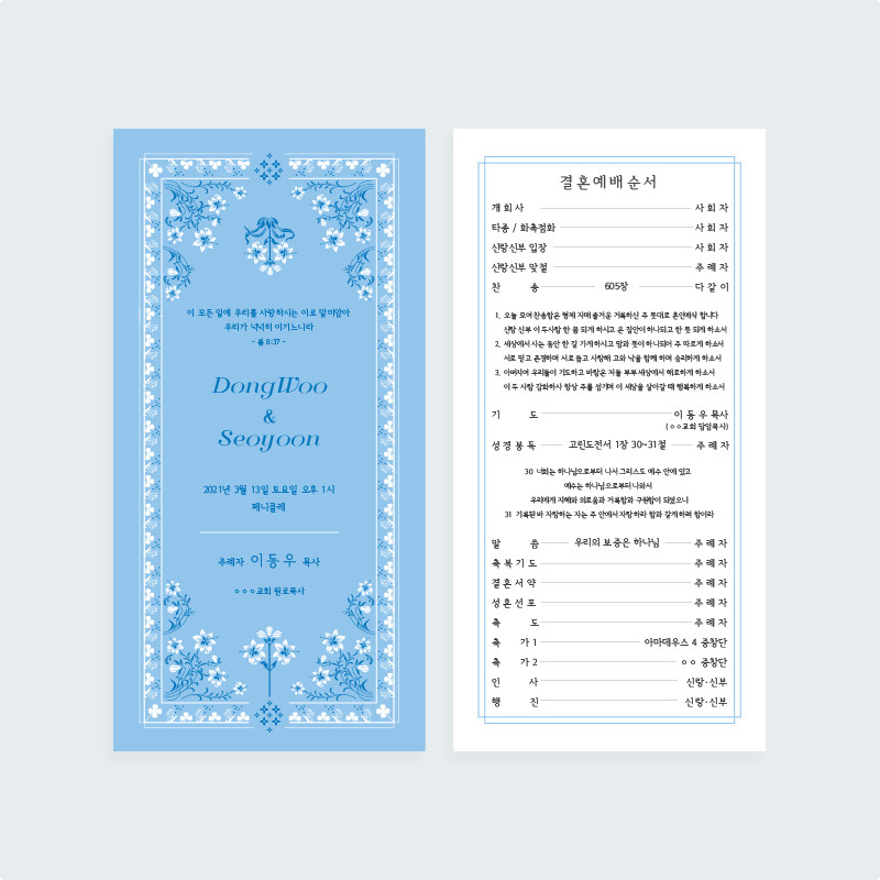 Fairy periwinkle 카드의 디자인으로 구성된 예배순서지입니다.