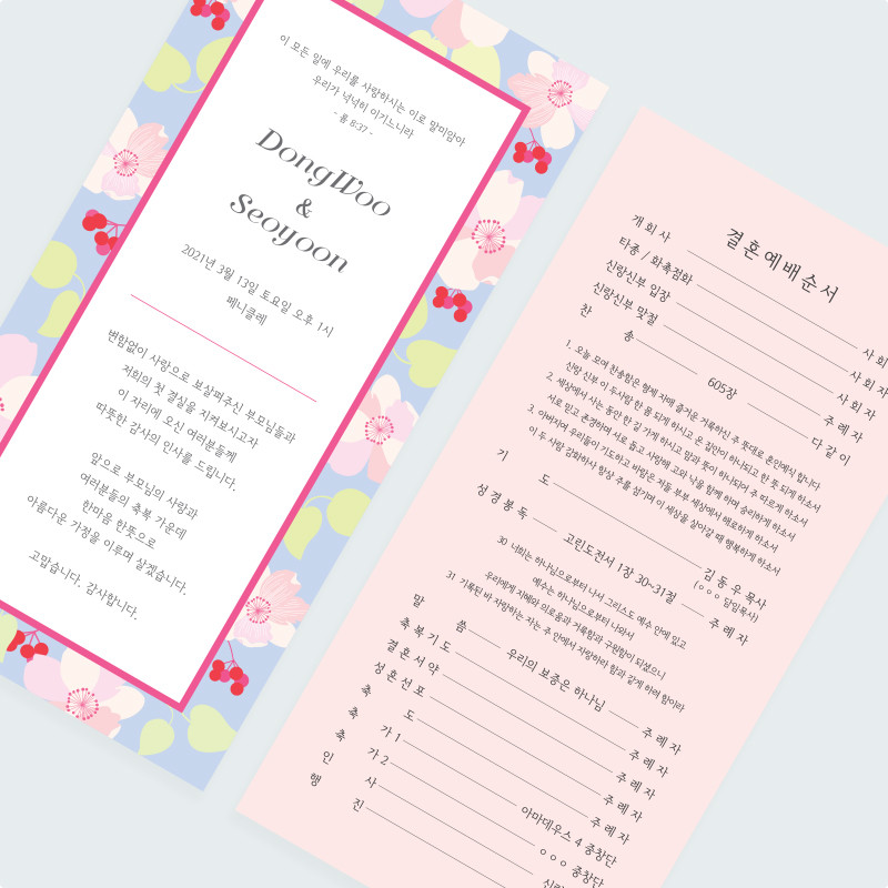 • 예배순서지는 시안 확정 이후 발송까지 영업일 기준 약 3~4일의 제작기간이 필요합니다