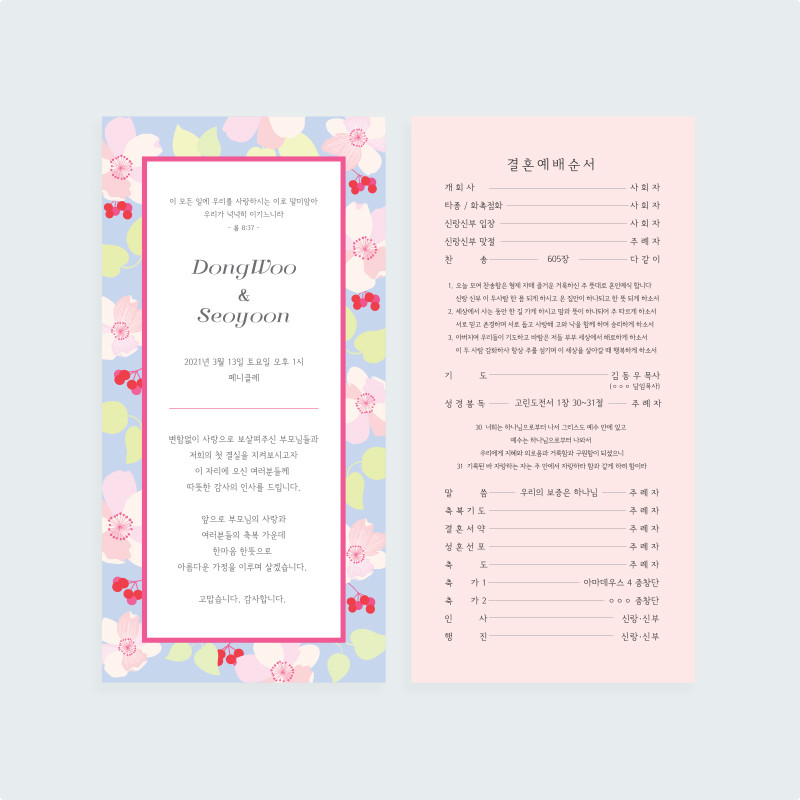 카드 앞면에 신랑신부님이이 전하는 감사말씀을 기재하실 수 있습니다.
