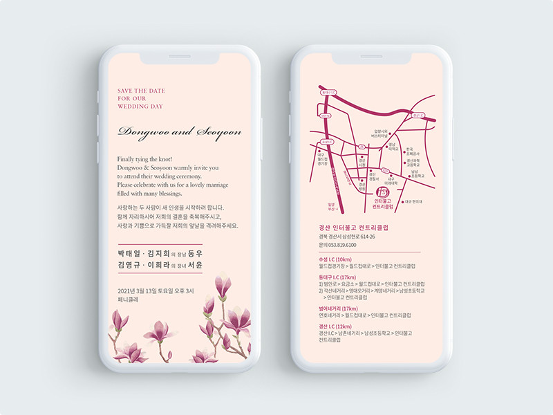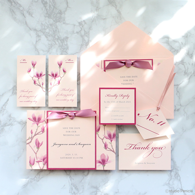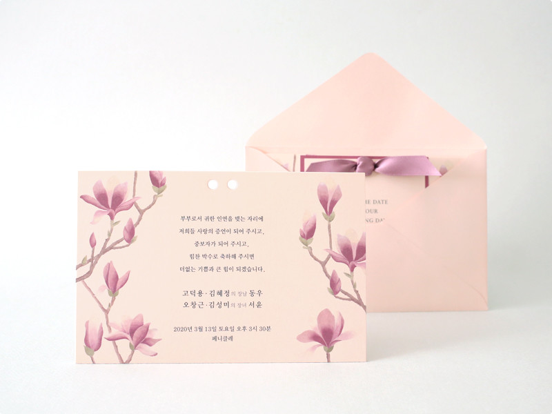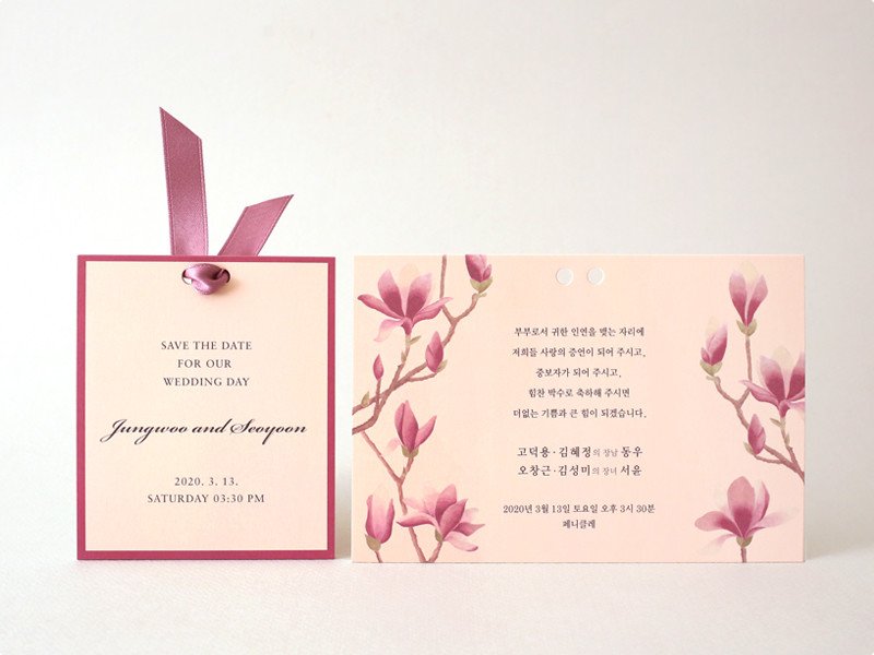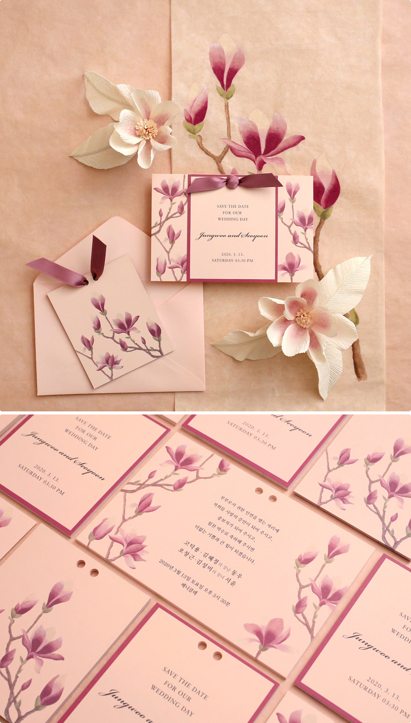 탐스럽게 피어난 자목련에서 영감을 받은 웨딩카드입니다.