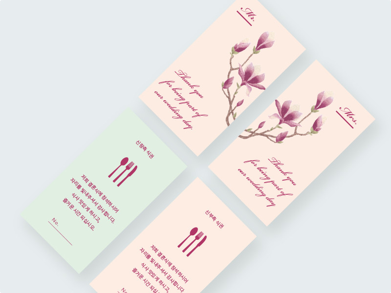 손님께 전하는 식권도 동일한 디자인으로 준비되어 있습니다.
