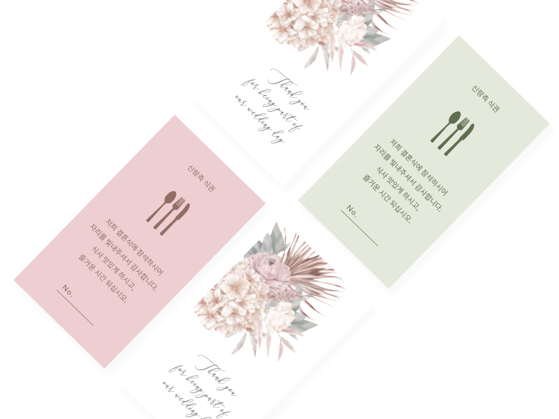 손님께 전하는 식권도 동일한 디자인으로 준비되어 있습니다.