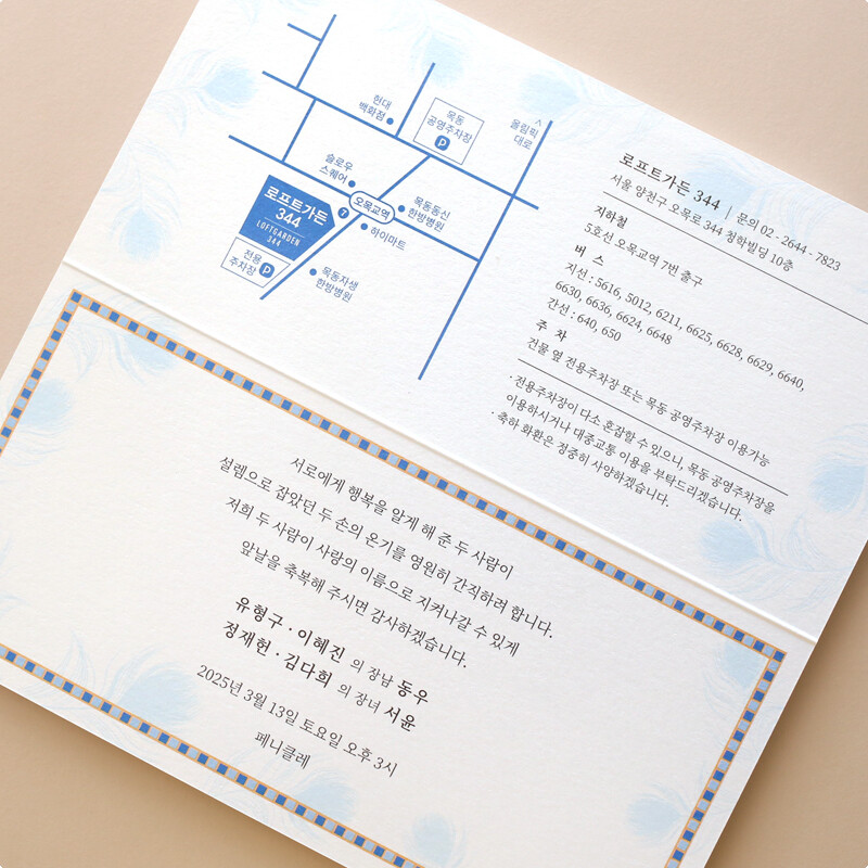 페니클레의 모든 인비테이션은 디자인 컨셉에 어울리는 최고급 수입지로 제작됩니다.