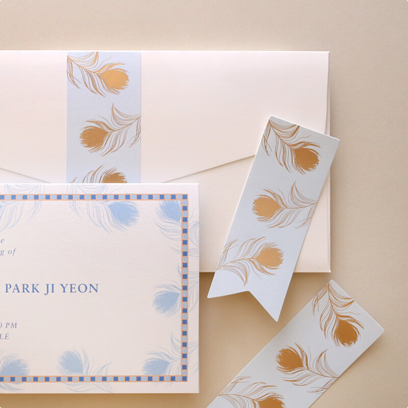 깃털을 모티브로 제작된 금박 띠지형 스티커도 눈여겨 보아주세요.