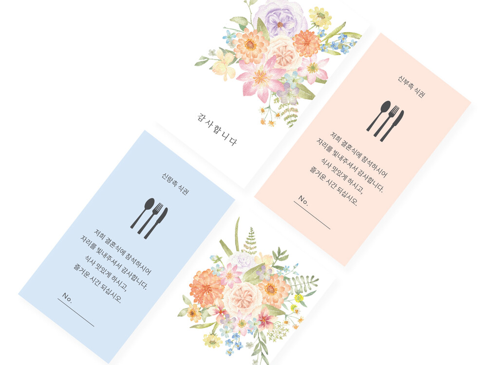 손님께 전하는 식권도 동일한 디자인으로 준비되어 있습니다.