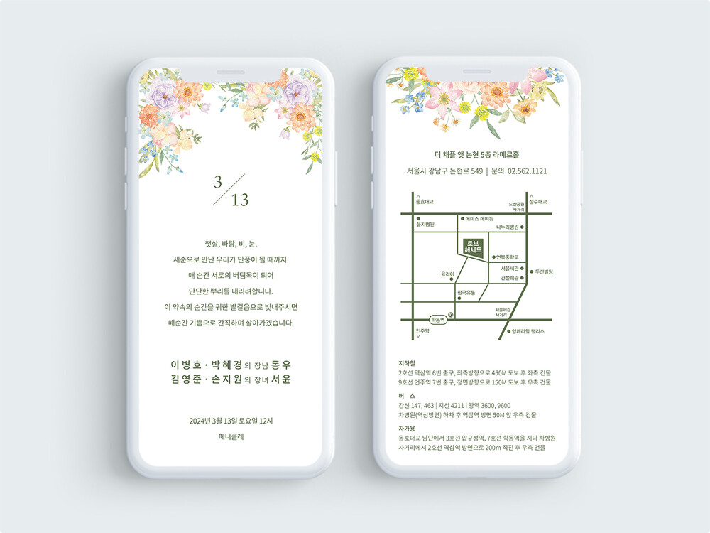 불필요한 기능과 링크없이 전달할 수 있는 JPG 형식의 모바일 청첩장
